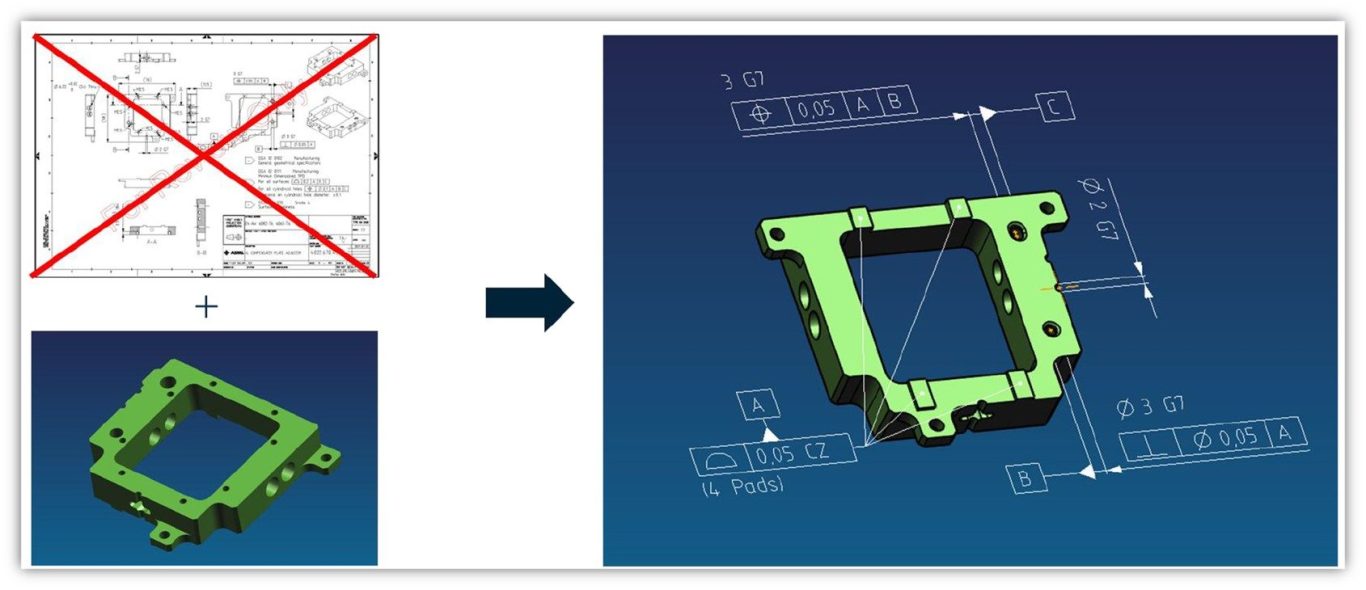 - MBD verrijkt productdefinities (zoals 3D CAD-modellen) om de resultaten van downstream-applicaties te versnellen en te verbeteren.
